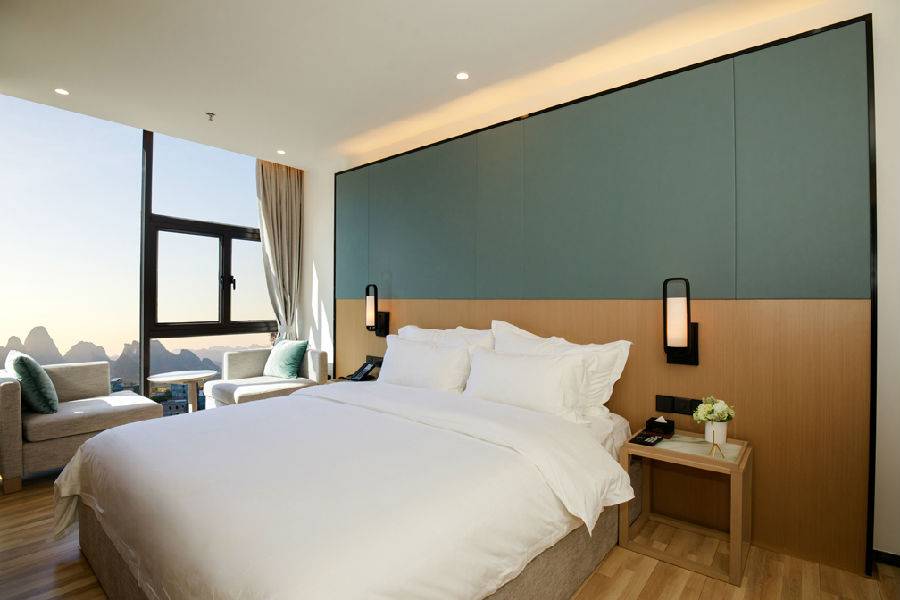 房间采用的是全景落地窗 尽可能展现峰林美景