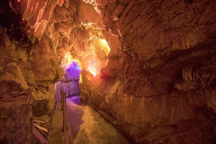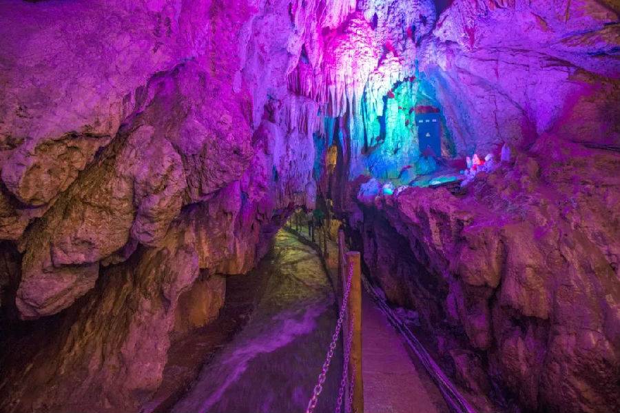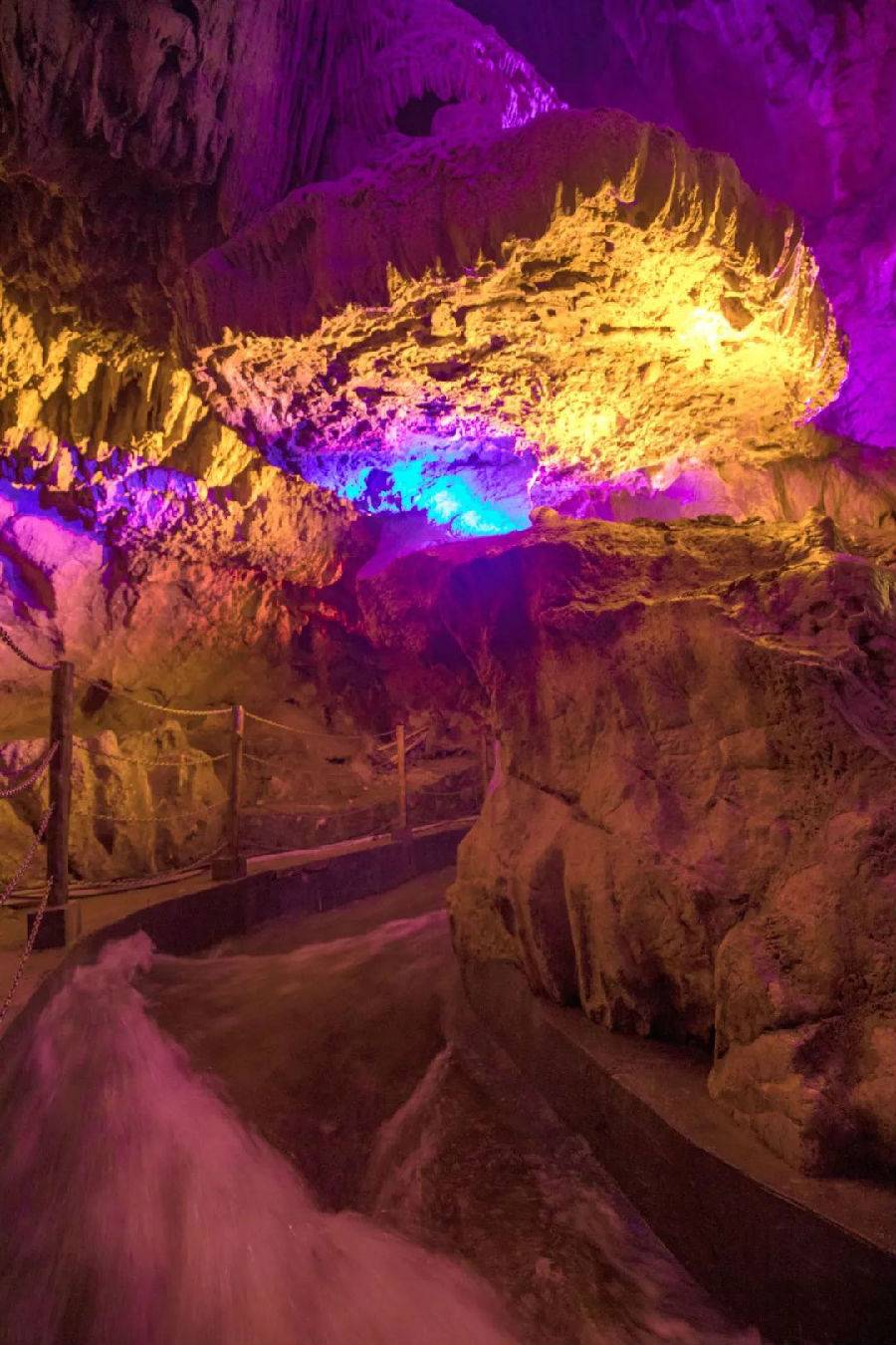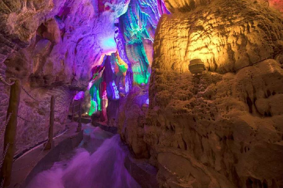 ★神笔仙洞景区,是由罕见的黄腊钟乳石构造而成的地下溶洞,经高科技灯光技术打造出如梦如幻的场景,人入其中,如游仙境。全程游玩约需一小时。