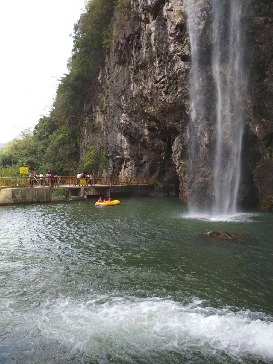 ★裂谷漂流,为世界最长的地心溶洞漂流--地心漂流的后半程,奇特之处在于眨眼之间通过80多米的山洞,在此,游客可体验如飞箭洞穿山峰的感觉,还可在百米高的瀑布下戏水。游程约需一小时。