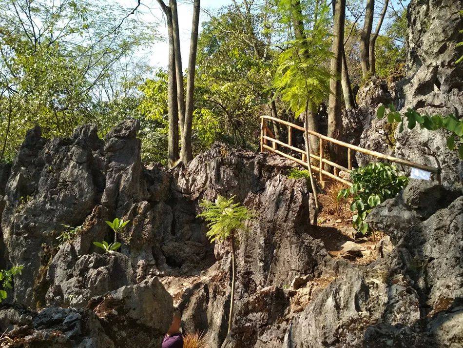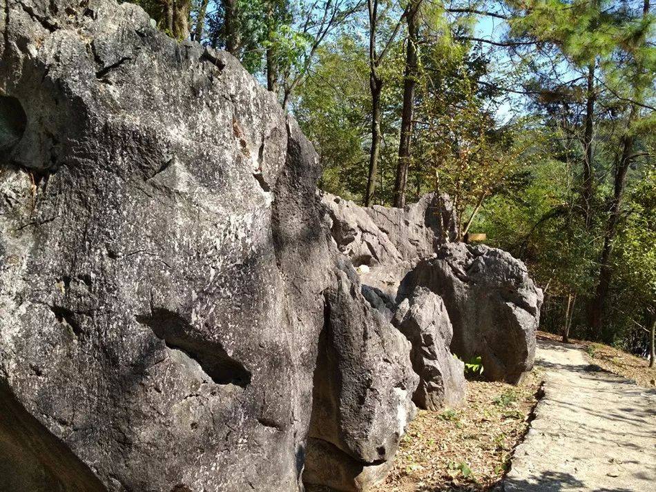 蜂蛹石林景点,由四大园林石之一的英石组成,成片蛹巢状的英石构成一幅百蛹成蜂、展翅离巢后的独特石林奇观。有天然玉面观音的观音洞、百米飞瀑大瀑布、200多米长的绝壁空中栈道。